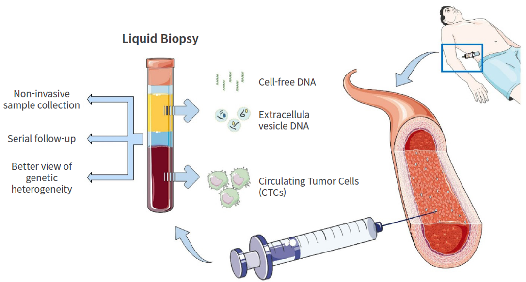 With improvements in the sensitivity of NGS technologies, liquid biopsy has emerged as one of the fastest-growing fields. Unlike tissue biopsy, liquid biopsy refers to the molecular genetic analysis of biomarkers such as circulating tumor DNA (ctDNA), circulating tumor cells (CTCs), and exosome in body fluids including blood, urine, and saliva.