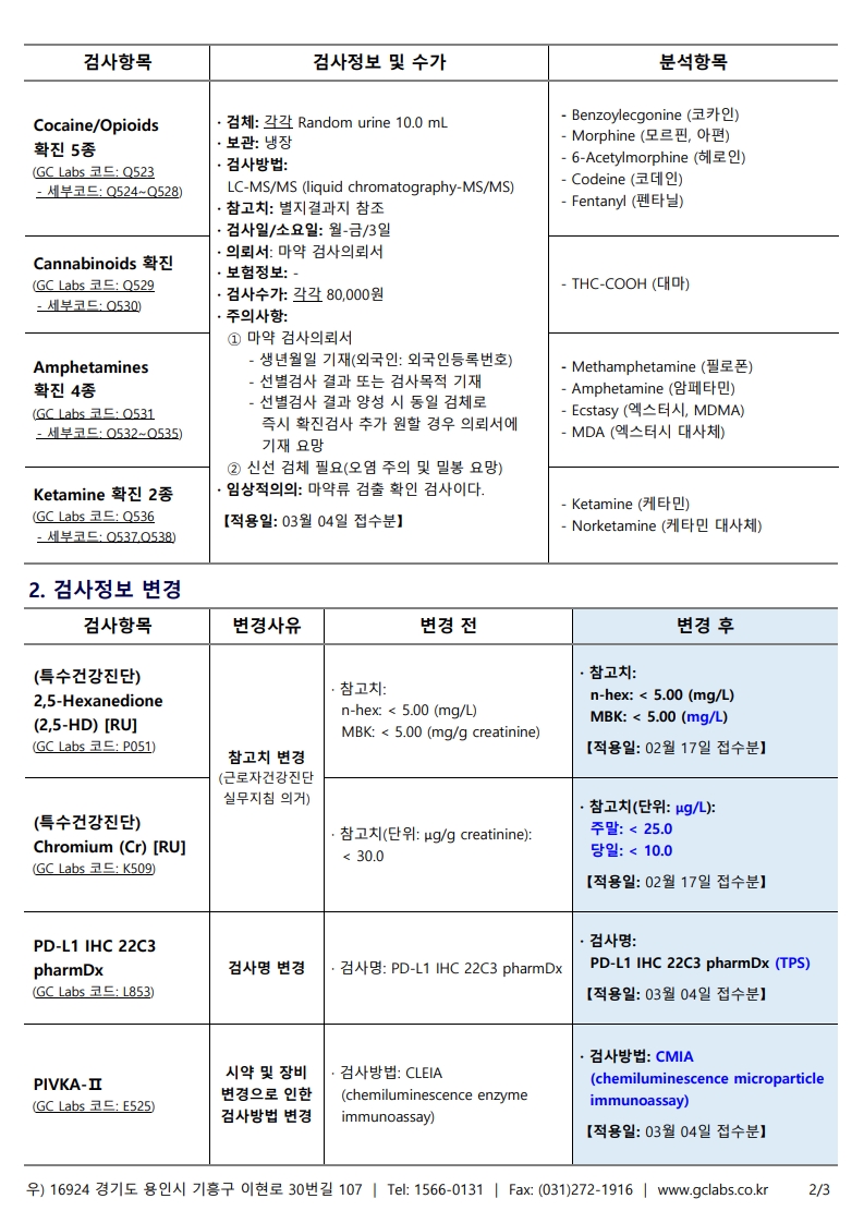 (특수건강진단) 2,5-Hexanedione (2,5-HD) [RU], (특수건강진단) Chromium (Cr) [RU], PD-L1 IHC 22C3 pharmDx, PIVKA-Ⅱ